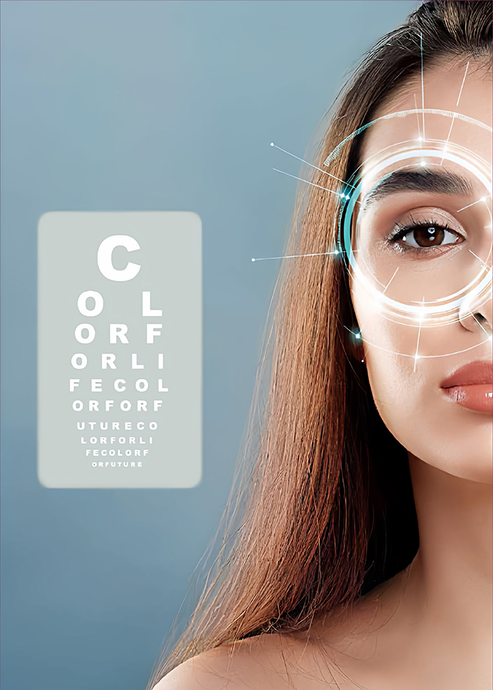 采用AI技术:精细镜片基弯、视网膜聚焦原则 、结合不同瞳距合理光学分布,优化高阶像差、波前像差、对双眼处方光度、散光、棱镜度、高度高散进行个性处方优化。