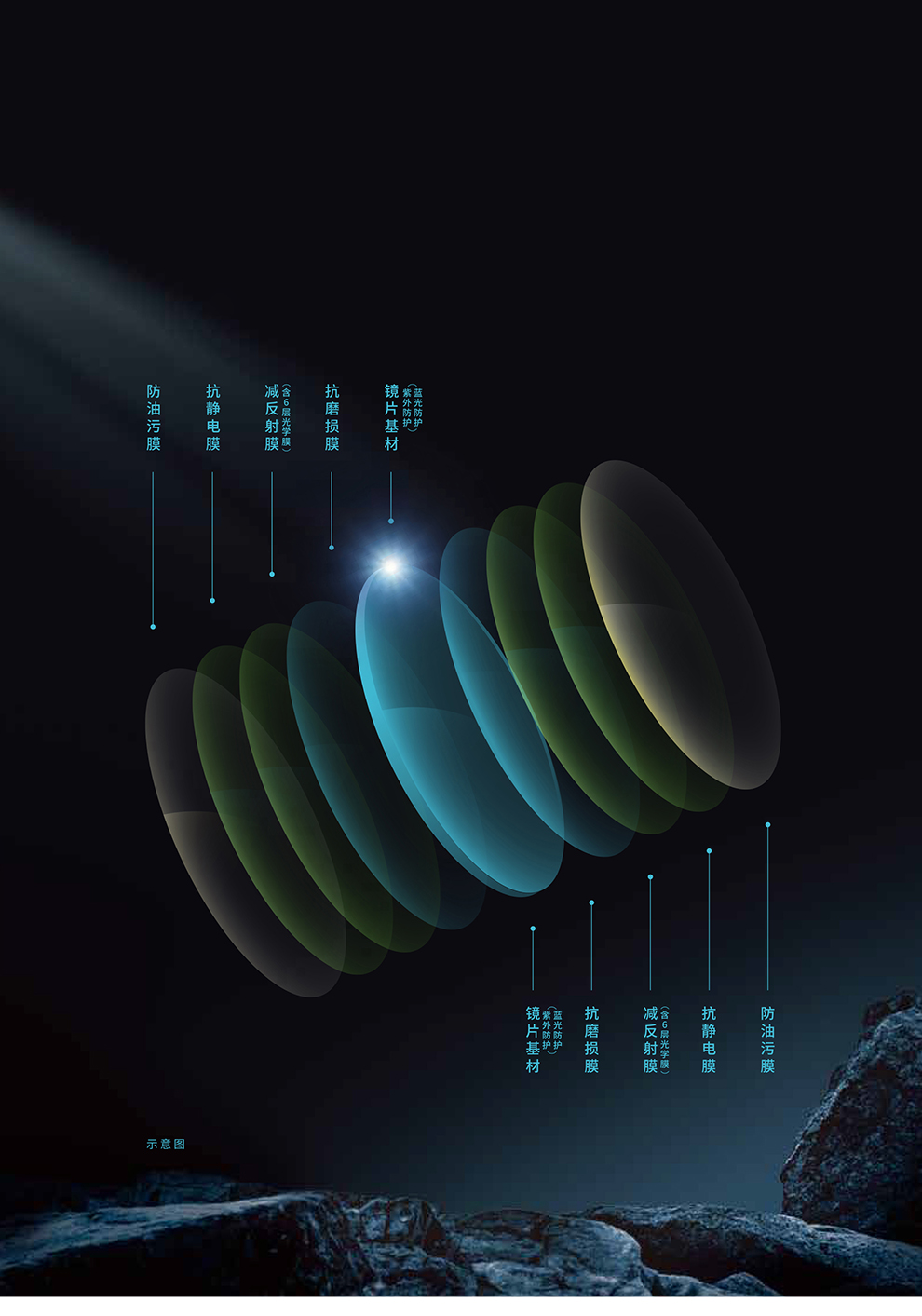 舒缓膜(能有效削减反光和眩光,过滤镜片内表面乱反射,提升夜间视觉敏锐度和清晰度,增光增亮效果好, 更适合夜间畏光 弱视 高散 调节力差人群)