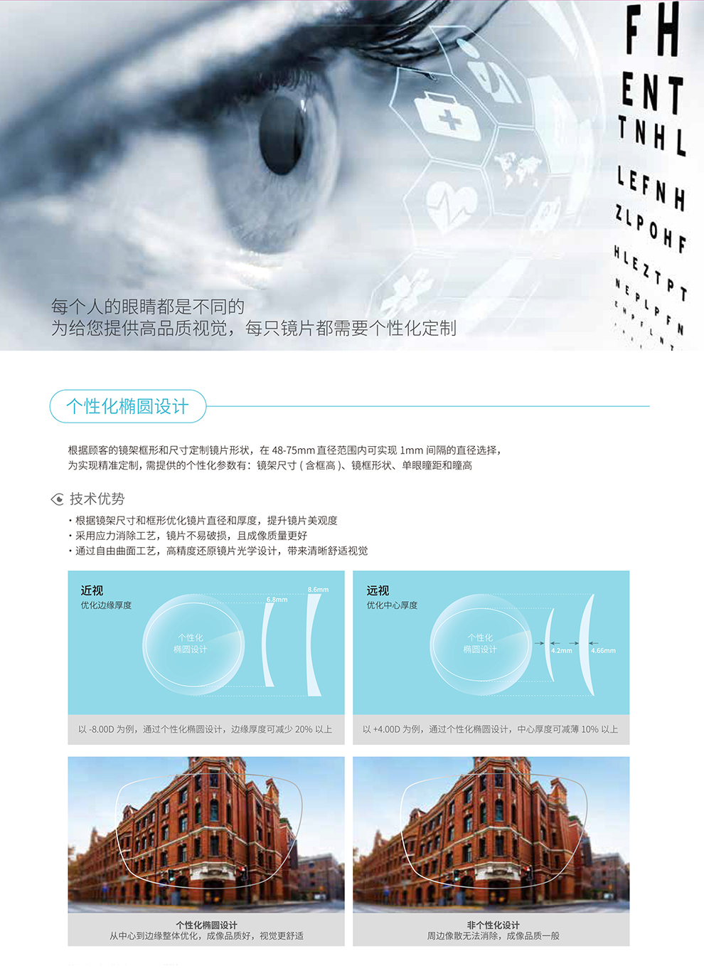个性椭圆优化设计(处方 参数周边优化可消除周边像差 视野成像提升至99%)