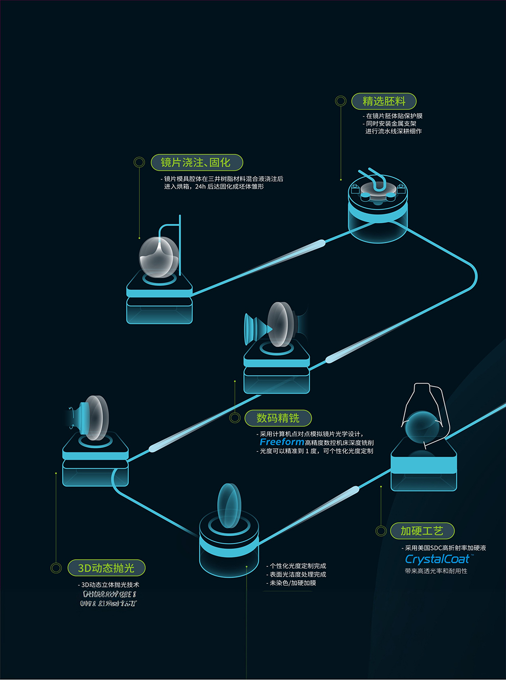 ○采用高清 高透基材,全面型自由曲面优化设计,更薄更轻的镜片